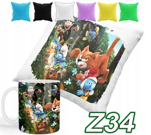 ZESTAW KUBEK +POSZEWKA Z NADRUKIEM PREZENT SMERFY BAJKI+IMIĘ