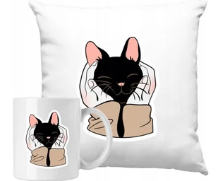 ZESTAW PODUSZKA + KUBEK Kot Miły Zabawny Kotek Pomysł Na Prezent