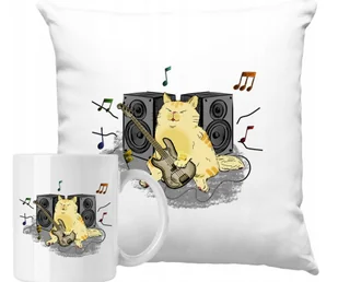 ZESTAW PODUSZKA + KUBEK Kot Śmieszny Muzyka Pomysł Na Prezent +IMIĘ