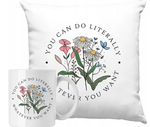 ZESTAW PODUSZKA + KUBEK Kwiaty Dekoracje Linia Pomysł Na Prezent +IMIĘ #1