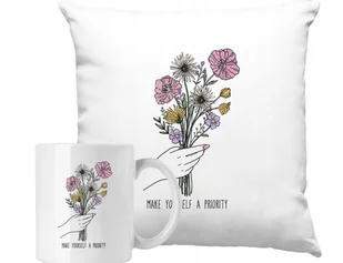 ZESTAW PODUSZKA + KUBEK Kwiaty Dekoracje Linia Pomysł Na Prezent +IMIĘ #7