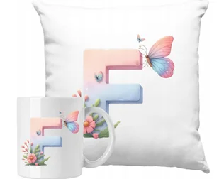 ZESTAW PODUSZKA + KUBEK Motylek Motyl Litera Alfabet F Pomysł Na Prezent