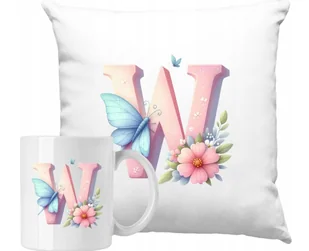 ZESTAW PODUSZKA + KUBEK Motylek Motyl Litera Alfabet W Pomysł na Prezent