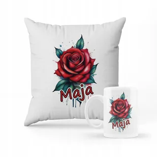 ZESTAW PODUSZKA + KUBEK Prezent Bajkowa róża + IMIĘ