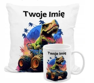 ZESTAW PODUSZKA + KUBEK Prezent DINOZAURY T-REX Dla chłopca + IMIĘ 27