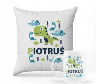 ZESTAW PODUSZKA + KUBEK Prezent DINOZAURY T-REX Z DINOZAURAMI + IMIĘ 31