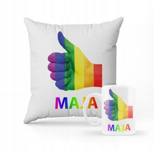 ZESTAW PODUSZKA + KUBEK PREZENT DLA DZIECKA LGBT ŁAPKA HOMO + IMIĘ