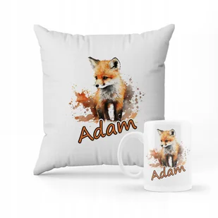 ZESTAW PODUSZKA + KUBEK Prezent lisek + IMIĘ