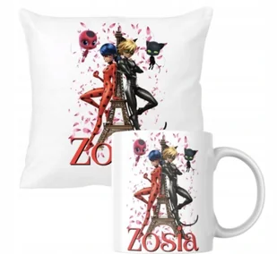 ZESTAW PODUSZKA + KUBEK Prezent MIRACULUM BIEDRONKA CZARNY KOT + IMIĘ 6