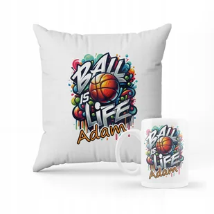 ZESTAW PODUSZKA + KUBEK Prezent Piłka od koszykówki + IMIĘ