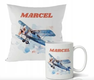 ZESTAW PODUSZKA + KUBEK Prezent SAMOLOT SAMOLOTY + IMIĘ 8