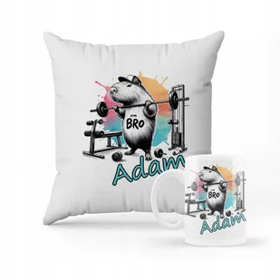 ZESTAW PODUSZKA + KUBEK Prezent Siłownia Kapibara Kulturysta+ IMIĘ #3