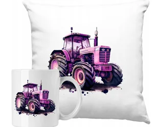 ZESTAW PODUSZKA + KUBEK Różowy Traktor Rolnik Pomysł Na Prezent