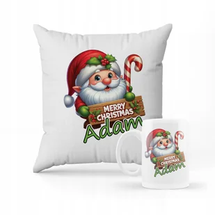 ZESTAW PODUSZKA + KUBEK Święty Mikołaj zabawny wzór prezent święta + IMIĘ 2