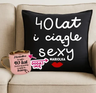 Personalizowany Zestaw prezentowy na 40 urodziny dla kobiety - elegancja poduszka oraz kubek na 40 urodziny - kubek ceramiczny około 440 ml - kompletna poduszka z wypełnieniem wymiary około 50 cm na 50 cm - fajna duża poduszka - miła i miękka ;)