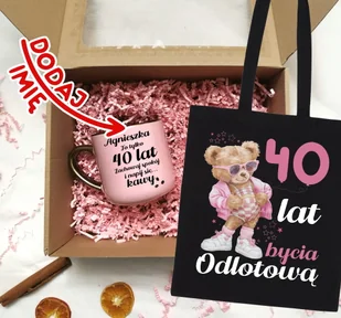 Zestaw Prezentowy na 40. Urodziny Szukasz idealnego prezentu na 40. urodziny? Ten elegancki zestaw to doskonały wybór! W skład zestawu wchodzi: Kubek na 40 urodziny – stylowy, z personalizowanym imieniem, idealny do porannej kawy lub herbaty. Torba na zakupy – w kolorze czarnym, trwała i praktyczna, świetnie sprawdzi się na co dzień.