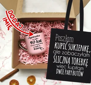 Zestaw Prezentowy na 40. Urodziny Szukasz idealnego prezentu na 40. urodziny? Ten elegancki zestaw to doskonały wybór! W skład zestawu wchodzi: Kubek na 40 urodziny – stylowy, z personalizowanym imieniem, idealny do porannej kawy lub herbaty. Torba na zakupy – w kolorze czarnym, trwała i praktyczna, świetnie sprawdzi się na co dzień.