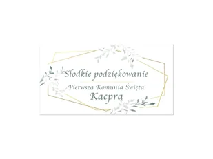 Samoprzylepne etykiety personalizowane na pudełka na ciasto na I Komunię Świętą.