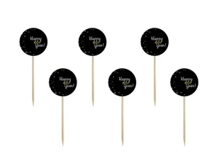 Papierowe dekoracje na piku na sylwester i nowy rok z zestawu Happy New Year Srebrne Gwiazdki, idealna dekoracja muffinek, koreczków czy innych przekąsek.