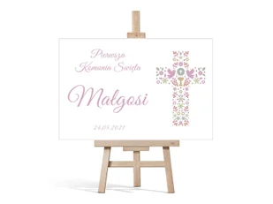 Duży papierowy plakat jednostronny personalizowany na I Komunię Świętą. Plakat wydrukowany w wysokiej jakości na papierze o gramaturze 180g. Wymiary: 60x40 cm. W notatce do zamówienia prosimy o podanie imienia dziecka w formie odmienionej oraz datę.