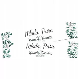 Tablica wykonana jest na grubszym papierze. Wymiary: ok. 11 x 50 cm UWAGA! Na innych naszych aukcjach możesz znaleźć pozostałe produkty ślubne z kolekcji C ZIELONE tworząc kompletny zestaw. Po złożeniu zamówienia proszę podać dane do personalizacji: imiona Pary Młodej datę ślubu