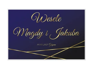 Duży papierowy plakat jednostronny personalizowany na Wesele. Napisy w kolorze złotym. Plakat wydrukowany w wysokiej jakości na papierze o gramaturze 180g. Wymiary: 90x60 cm. Dane do banera należy podać w notatce do zamówienia. Plakat nie jest złocony.