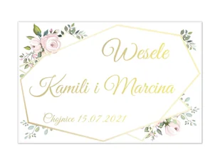 Duży papierowy plakat jednostronny personalizowany na Wesele. Motyw w kolorze złotym. Plakat wydrukowany w wysokiej jakości na papierze o gramaturze 180g. Wymiary: 90x60 cm. Dane do banera należy podać w notatce do zamówienia. Plakat nie jest złocony.