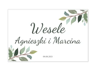 Duży papierowy plakat jednostronny personalizowany na Wesele. Motyw z zielonymi listkami. Plakat wydrukowany w wysokiej jakości na papierze o gramaturze 180g. Wymiary: 60x40 cm. Dane do plakatu należy podać w notatce do zamówienia.