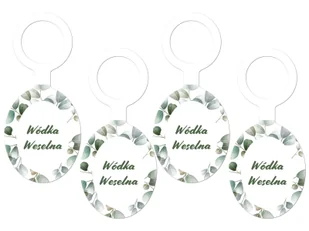 Papierowa zawieszka na butelkę w motywie eukaliptusa i napisem Wódka Weselna.
