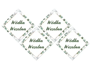 Papierowa zawieszka z wstążeczką na butelkę w motywie eukaliptusa i napisem Wódka Weselna.