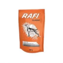Karma Rafi to pełnoporcjowa bezzbożowa karma mokra, zaspokajająca w pełni potrzeby żywieniowe dorosłych psów. Wysokiej jakości gatunki mięsa i surowce pochodzenia mięsnego (aż 70%) są źródłem wysokostrawnego białka. Karma zawiera kwasy tłuszczowe w odpowiedniej ilości, aby procesy metaboliczne przebiegały prawidłowo, a pies o umiarkowanej aktywności fizycznej nie był narażony na nadwagę. Dodatek lekkostrawnych surowców roślinnych wpływa na odpowiednią pracę procesów trawiennych oraz regularność wypróżnień. Stały skład karmy RAFI gwarantuje codzienne dostarczenie niezbędnych składników odżywczych w tym wapnia i fosforu niezbędnych do prawidłowej budowy kości.Karma nie zawiera barwników i konserwantów. Przestrzeganie sugerowanych przez producenta dziennych dawek karmy gwarantuje utrzymanie zbilansowanej diety, bez ryzyka pojawienia się otyłości