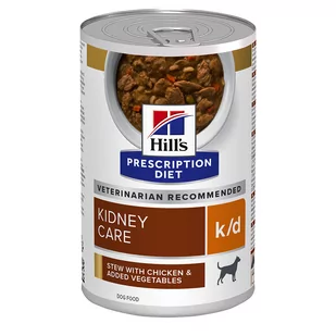 Hill’s Prescription Diet k/d Kidney Care gulasz z kurczakiem dla psów w skrócie: Dietetyczna karma mokra dla dorosłych psów wspomagająca czynność nerek w przewlekłej lub ostrej niewydolności nerek. Odpowiednia zawartość pełnowartościowych białek: wspomaga utrzymanie masy mięśniowej, bez zbędnego obciążania nerek. Kontrolowana zawartość fosforu i niska zawartość sodu.
