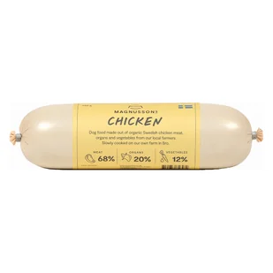 Magnusson - pyszna karma mokra dla szczeniąt i dorosłych psów! Dzięki wysokiej zawartości świeżego szwedzkiego mięsa i podrobów karma Magnusson oferuje zbilansowane i zgodne z dobrostanem gatunku żywienie dla Twojego wiernego, czworonożnego przyjaciela. Zapakowana w poręczną rolkę karma jest nie tylko praktyczna, ale także najwyższej jakości. Wszystkie składniki pochodzą od lokalnych szwedzkich rolników i są w jakości spożywczej. Karma Magnusson jest delikatnie gotowana na parze, aby zachować pełen smak i cenne składniki odżywcze. Nie zawiera cukru ani sztucznych dodatków, takich jak konserwanty, wzmacniacze smaku, aromaty lub barwniki.