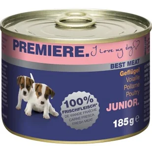 PREMIERE Best Meat to karma pełnoporcjowa dla szczeniąt i młodych psów, której wysokogatunkowe składniki i łagodne przetwarzanie gwarantują doskonałą przyswajalność. Ponadto karma PREMIERE Best Meat nie zawiera substytutów białka, takich jak soja, i jest przyrządzana bez sztucznych barwników, sztucznych aromatów, atraktantów i konserwantów. Najwyższej jakości składniki i łagodna obróbka gwarantują doskonałą przyswajalność. Zalety w skrócie: wysoka zawartość mięsa i wnętrzności: