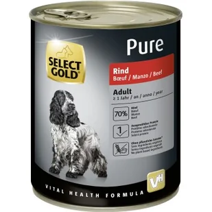 SELECT GOLD Pure Premium-mokra karma jest idealna dla wrażliwych psów, które mają skłonność do nietolerancji pokarmowych lub bardzo wrażliwego trawienia. Wysokiej jakości receptury charakteryzują się użyciem niewielu, bardzo dobrze tolerowanych składników i są dodatkowo dostosowane do potrzeb żywieniowych dorosłych psów. Każda receptura zawiera jako główny składnik wysokiej jakości mięso: konina, jagnięcina, jeleń, kurczak, wołowina – idealne dla żywienia bardzo wrażliwych psów. Bez roślinnych składników w postaci zbóż, warzyw, ziemniaków lub bulw.