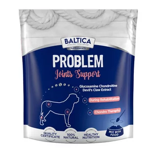 Baltica Problem Joints Support 500g suplement na stawy ➡️Problem Joints Support to preparat przeznaczony do uzupełnienia diety psów dorosłych z problemami w obrębie aparatu ruchu, po przebytych kontuzjach lub operacjach kończyn. ✅Skład: Kolagen typu II (hydrolizat wieprzowy) 400mg, Siarczan glukozaminy 225mg, MSM (metylosulfonylometan) 215mg, Siarczan chondroityny 25mg, Czarci pazur (ekstrakt) 100mg ✅Dodatki dietetyczne/kg: Witamina C (kwas L-askorbinowy) 35000 mg ✅Skład analityczny/100g: Białko 31,9%, Tłuszcze 0,3%, Popiół całkowity 16%, Wilgotność 16%, Potas 5,4g, Sód 1,7g, Siarka 6,8g ✅Sposób podania: podawać po uprzednim zmieszaniu z pokarmem ✅Dawkowanie dzienne: