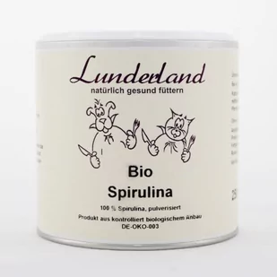 Wpływ spiruliny na organizm: wspomaga utrzymanie naturalnej flory bakteryjnej jelit - jest bardzo bogatym źródłem żelaza, zapewnia wysoki wzrost witalności, wiąże metale ciężkie i wspomaga ich wydalanie, wpływa na regulację stężenia cukru we krwi, wpływa na regulacje ciśnienia tętniczego krwi - wspomaga system immunologiczny. Produkty Lunderland są produkowane i pakowane z zachowaniem najwyższych standardów wymaganych dla żywności. Aktualny skład poszczególnych partii produktu znajduje się na stronie producenta. Certyfikat rolnictwa ekologicznego dostępny na stronie producenta.