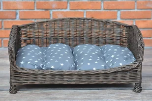 Prostokątne legowisko, kanapa dla zwierząt w ciemnym kolorze. Wygodne dla Twojego pupila, estetycznie wykończone i dekoracyjne jednocześnie. Ręcznie pleciony...
