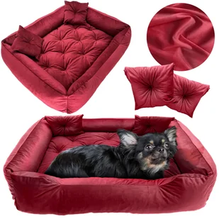 Legowisko Dla Psa Kanapa Posłanie Welurowe 90X75 Cm Pikowane Prestiżowe Czerwone