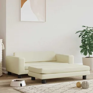 Legowisko dla psa z dostawką, kremowe, 100x50x30 cm, ekoskóra Zapewnij swojemu czworonożnemu przyjacielowi przytulne i wygodne miejsce do wypoczynku za spraw...