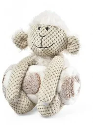 Odpowiedni również dla przedstawicieli małych ras. Owieczka jak i kocyk wykonane są z super miękkiej tkaniny, dzięki czemu sprawdzą się w roli przytulanki i okrycia. Łatwy w utrzymaniu, można prać w pralce Wymiary pluszaka: 27x23cm Wymiary kocyka: 60x70cm