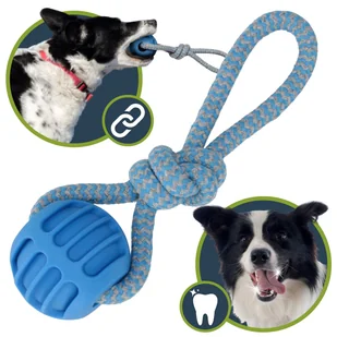 Szarpak BAWEŁNIANY z piłką dla psa, 3w1 ZABAWKA DO APORTOWANIA, PRZECIĄGANIA, GRYZIENIA 20 cm