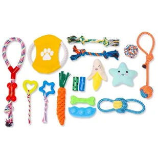 Zestaw szarpaków zabawek dla psa FRANKIE 16 elementówW zestawie: 14 zabawek + woreczkiCzy Twój pies uwielbia się szarpać, gryźć i bawić? Zestaw zabawek dla psa FRANKIE jest idealnym rozwiązaniem! Ten kompletny zestaw zawiera aż 16 różnych elementów, które zapewnią Twojemu psu niezapomnianą zabawę i jednocześnie spełnią potrzebę gryzienia. Szarpaki, gryzaki i zabawki zostały wykonane z najwyższej jakości bawełny, PVC, są estetycznie wykonane i posiadają przyjemne dla oka kolory. Marka ZWIERZOPASJA gwarantuje najwyższą jakość wykonania i trwałość zestawu. Każdy element został starannie zaprojektowany, aby wytrzymać długotrwałe szarpanie i gryzienie. Bezpieczeństwo Twojego psa jest dla nas priorytetem, dlatego każda zabawka została wykonana z nietoksycznego i bezpiecznego dla zwierząt materiału. Zestaw szarpaków FRANKIE to nie tylko zabawki, ale również świetne narzędzia do nauki. Możesz wykorzystać je do treningu posłuszeństwa, aportowania lub wzmocnienia więzi między Tobą a Twoim czworonożnym przyjacielem. Bawienie się z psem nie tylko dostarcza mu radości, ale również pomaga w utrzymaniu jego zdrowia i kondycji. Zestaw szarpaków dla psa FRANKIE sprawi Twojemu pupilowi niezapomniane chwile pełne radości i zabawy. Daj swojemu psu to, czego naprawdę pragnie i zasługuje.Zestaw szarpaków FRANKIE od marki ZWIERZOPASJA - bo Twój pies zasługuje na najlepsze! Specyfikacja:Materiał: bawełna + PVCIlość elementów w zestawie: 16Waga zestawu: 0,69 kgPrzeznaczenie: dla małych i średnich psówMożliwość prania szarpaków i maskotek w pralce: tak Zawartość zestawu:✅Gumowy gryzaczek Fasolka do czyszczenia zębów o długości 12 cm✅Gumowa Kość o długości 11 cm✅Maskotka Gwiazdka z piszczałką o długości 12 cm✅Szarpak Gwiazdka do rzucania o długości 18 cm✅Szarpak z Sercem do rzucania o długości 19 cm✅Szarpak Motylkowy o długości 20 cm✅Piłka Pleciona o średnicy 6 cm✅Szarpak z kością o długości 40 cm✅Maskotka Bananek z piszczałką o długości 13 cm✅Dysk, Frisbee o średnicy 18 cm✅Sznurek, szarpak o długości 22 cm✅Sznurek, szarpak o długości 22 cm✅Woreczki na spacery✅Pleciony gryzak, marchewka o długości 16 + 8 cm✅Szarpak z piłką o długości 32 cm i średnicy piłki 5,5 cm Bogaty zestaw - aż 16 elementów w komplecieZapewnij swojemu psu różnorodność i niekończącą się zabawę dzięki naszemu bogatemu zestawowi szarpaków. Ten wyjątkowy zestaw składa się aż z 14 różnych zabawek, które dostarczą Twojemu pupilowi niezapomnianych chwil radości i rozrywki. Dzięki różnorodności szarpaków, Twój pies będzie miał wiele opcji do wyboru i możliwość eksplorowania różnych form zabawy. Niezależnie od preferencji Twojego psa, nasz zestaw zapewnia mnóstwo atrakcji, które utrzymają jego zainteresowanie i spełnią jego potrzeby.W zestawie znajdziesz nie tylko szarpaki, ale także gryzaki i kolorowe maskotki z piszczałkami, dla jeszcze większej frajdy z zabawy!Wsparcie rozwoju Twojego pupilaZabawa szarpakami ma znaczący wpływ na rozwój psa pod wieloma względami. Zestaw szarpaków dla psa FRANKIE został stworzony z myślą o zapewnieniu nie tylko rozrywki, ale także wsparcia w rozwoju Twojego czworonoga. Podczas szarpania i gryzienia szarpaków, pies angażuje swoje mięśnie, wzmacniając jednocześnie siłę i wytrzymałość fizyczną. Ta forma aktywności fizycznej pomaga utrzymać psa w dobrej kondycji i wpływa korzystnie na jego zdrowie. Wspólna zabawa z szarpakami pozytywnie wpływa również na kondycję umysłową psa. Poprzez interakcję z właścicielem podczas gry, pies uczy się koncentracji, posłuszeństwa i skupienia. Trening z użyciem szarpaków może również pomóc w utrzymaniu psa w stanie umysłowej stymulacji i zapobieganiu nudzie. Dodatkowo, zabawa szarpakami jest doskonałą okazją do wzmocnienia więzi między psem a właścicielem. Wspólne radosne chwile spędzane podczas szarpania i gryzienia szarpaków wzmacniają relację, budują zaufanie i pozytywne emocje między Tobą a Twoim czworonożnym przyjacielem. Nie zapominajmy także o naturalnych instynktach psa. Szarpaki są doskonałym narzędziem do zaspokojenia potrzeby szarpania, gryzienia i żucia, które są wrodzone u psów. Dzięki odpowiednim szarpakom, Twój pies może wyrażać swoje naturalne zachowania w bezpieczny i kontrolowany sposób. Zabawki pomagają zadbać o właściwą higienę zębów Twojego pupila Zabawki wykonane są z bezpiecznych, naturalnych i nietoksycznych materiałów UWAGA | Przedstawione kolory należy traktować poglądowo - mogą odbiegać od rzeczywistych ze względu na różne ustawienia monitorów oraz proces obróbki zdjęć. • Rzeczywiste wymiary mogą się różnić od podanych w opisie. Tolerancja błędów może wynosić +/- 2 cm.