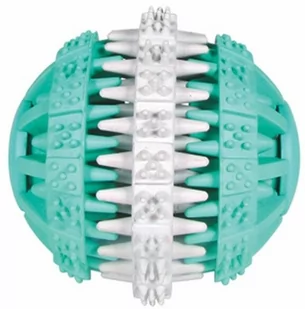 Średnica piłki 6cm lub 7cm Zabawka z serii Dentafun wykonana została z naturalnej miękkiej gumy. Specjalne rowki w piłce czyszczą zęby oraz przestrzeń pomiędzy nimi. Zabawka Trixie Piłka Dentafun zapobiega nagromadzaniu się kamienia nazębnego, gumowe wypustki delikatnie masują dziąsła psa. Piłka została wykonana z gumy nietoksycznej o zapachu mięty, co sprawia, że odświeża oddech. Ponadto dzięki temu, że posiada przestrzenie między ząbkami oraz jest pusta w środku, może posłużyć jako kulka – karmnik.