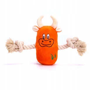 Zabawka dla psa kota pluszowa piszcząca KRÓWKA + sznur piszczałka szarpak