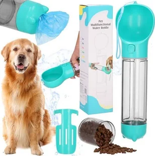 Butelka wielofunkcyjna z poidełkiem, 500 ml, pojemnik na karmę, worki dla psa, kota, turkusowa