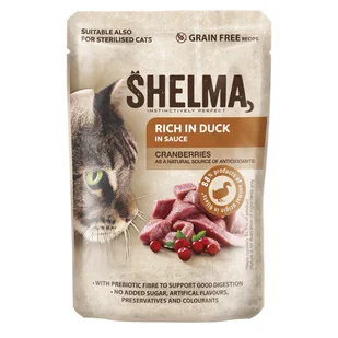 Bezzbożowa karma Shelma z kaczką i żurawiną w sosie to idealne połączenie pełnowartościowego białka, naturalnych składników i pysznego smaku, które zadowoli nawet najbardziej wymagające kocie podniebienia.