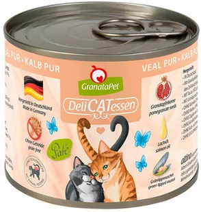 Koty są z natury drapieżnikami, a więc ich układ pokarmowy jest przystosowany do trawienia pokarmów bogatych w białko z umiarkowaną zawartością tłuszczu. Zboża natomiast są dla kotów ciężkostrawne, dlatego w karmach GranataPet całkowicie zrezygnowano z dodatków zbożowych, przez co stanowią one optymalne i naturalne pożywienie. GranataPet DeliCatessen jest wytwarzana w Niemczech i Austrii wyłącznie z pieczołowicie wybieranych i świeżych składników. Dzięki temu, że wytwarza się ją w procesie ostrożnego gotowania na parze, zachowuje wszystkie istotne witaminy, niezbędne kwasy tłuszczowe i cenne substancje odżywcze. GranataPet DeliCatessen w skrócie: