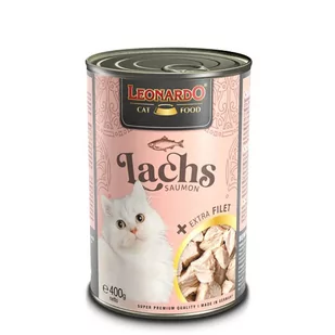 Leonardo łosoś z ekstra filetem z kurczaka mokra karma dla kotów 400g 207155220 Leonardo Mokra karma bogata w mięso z łososia z ekstra filetem z kurczaka. Wysoka zawartość najwyższej jakości soczystego mięsa z łososia wzbogaconego dodatkowo o pyszne kawałki filetu z kurczaka. Delikatnie gotowane w swoich sokach mięso staje się nieodpartym przysmakiem. Olej z łososia nadaje daniom ostatniego szlifu i zapewnia kwasy tłuszczowe dla szczególnie jedwabistej sierści. Produkt wytworzony z mięsa ze zwierząt nadających się do spożycia przez ludzi.