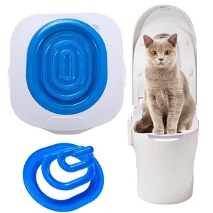 Nakładka dla kota nauka korzystania z wc kuweta Specyfikacja: uniwersalny rozmiar pasujący do większości toalet wymiary nakładki: 38 x 40 cm 4 wielkości otworów materiał: tworzywo sztuczne Nakładka na WC Dzięki nakładce na WC możesz nauczyć swojego kota z korzystania toalety, jak człowiek. Wystarczy trochę czasu, a nasz pupil przyzwyczai się do korzystania z WC.